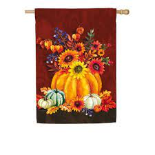 Harvest Floral Pumpkin Bouquet House Flag