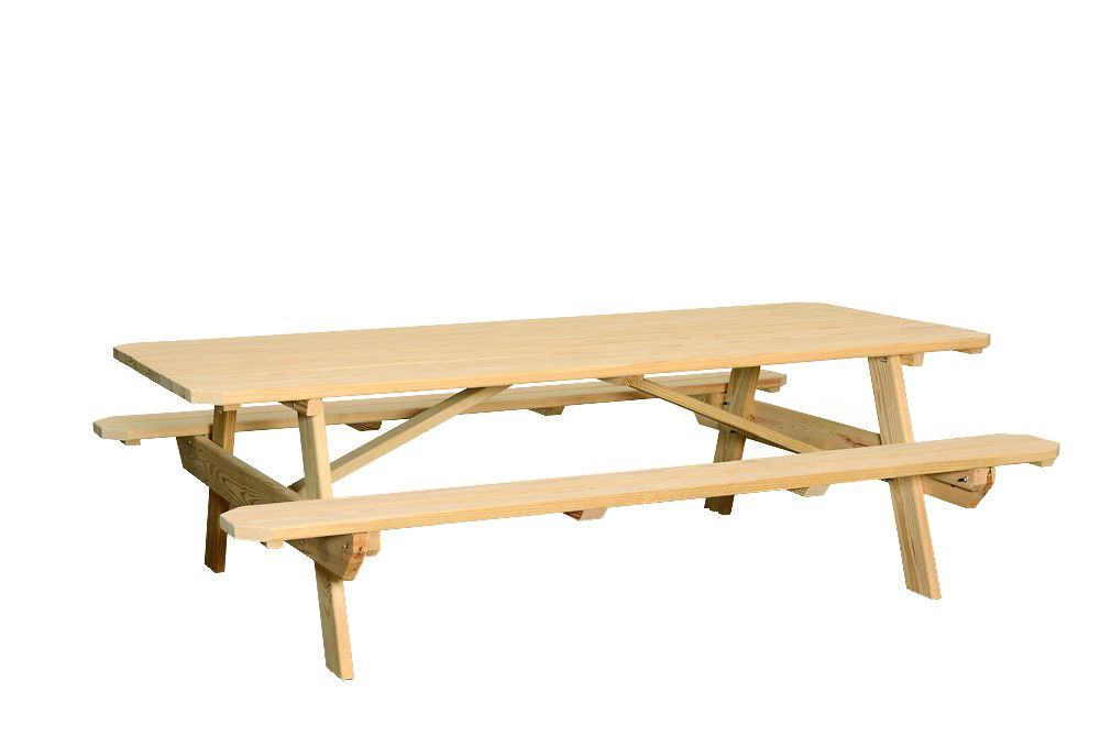 A simple design relative to the picnic table collection, our wood table sets provide basic and attractive mix-and-match tables and chairs, as well as more complex designs complete with features such as border tables, curved benches, and tables with optional umbrella capability.