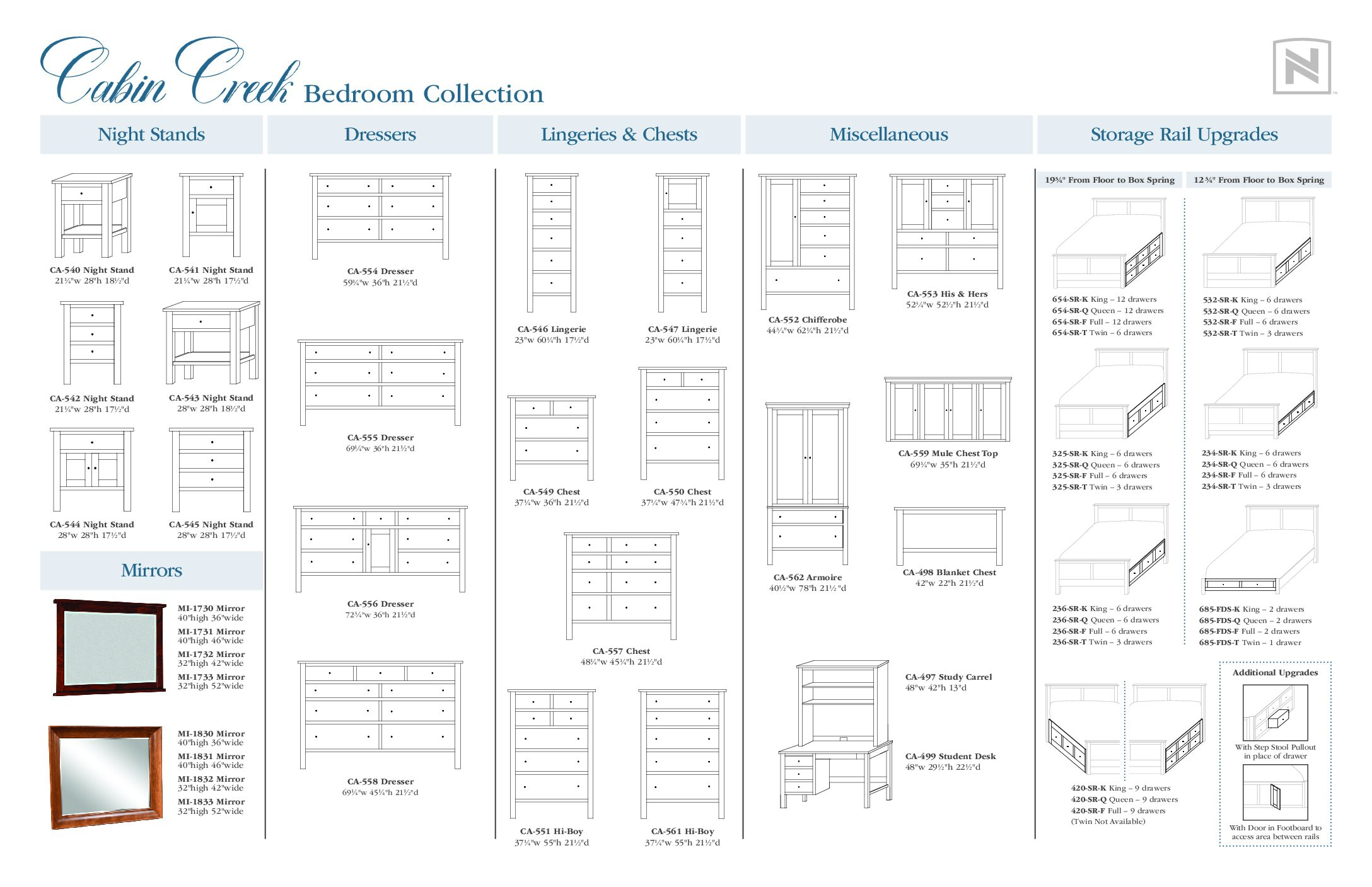 With its clean lines, warm textures, and subtle rustic accents, Cabin Creek creates a relaxed, lodge-inspired atmosphere perfect for winding down at the end of the day. Hand-sanded finishes, precision joinery, and full-extension drawer glides ensure every piece feels as durable and functional as it is inviting.